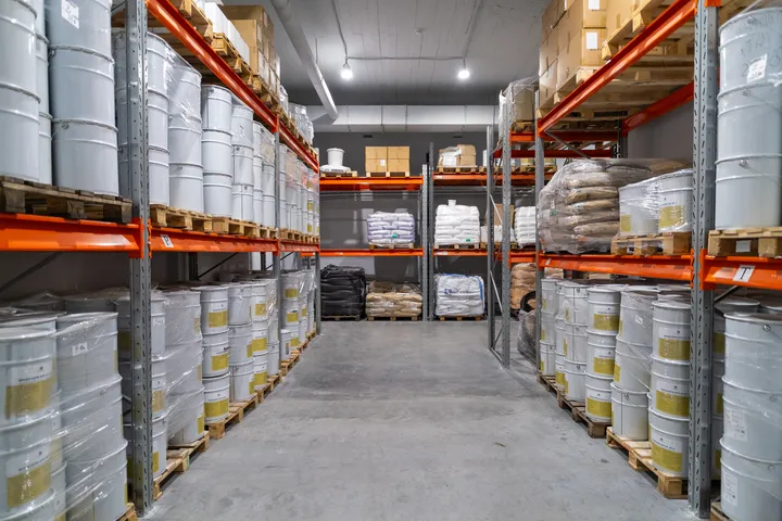 Складские помещения производства АТОМИНОПРОМ предназначены как для теплого, так и для всепогодного хранения, и предполагают наличие исходного, промежуточно заготовленного сырья, либо готового к отгрузке товара под каждый из проектных заказов, а также складской запас готовой продукции для допоставки на объекты, где ведутся строительно-монтажные работы нашим монтажным подразделением.