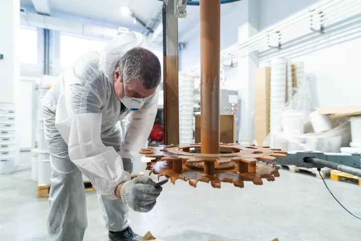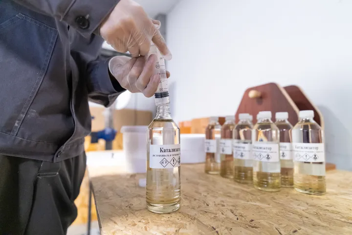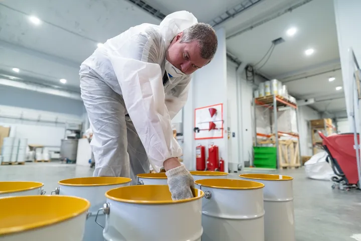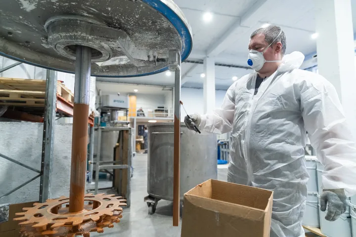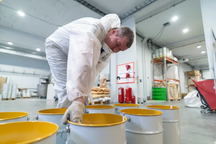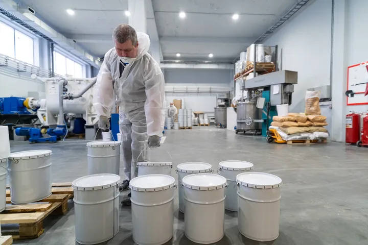 Цех непрерывного цикла окрашивания полуавтоматическим способом позволяет осуществлять выпуск изделий из базальтовых минераловатных и гипсоволокнистых влагостойких плит с заданными габаритами и толщиной нанесения огнезащитного покрытия. Технология окрашивания предполагает поверхностный и объемный метод вулканизации при плакировке изделий, что позволяет варьировать свойства конечных изделий и их скорость сушки. Точность толщины слоя покрытия гарантирована четырехстадийным контролем – лабораторная проверка динамической вязкости и сухого остатка материала, контроль нормы расхода массы материала на единицу площади окрашиваемой поверхности, весовой контроль готовых изделий и механическое измерение толщины конечного изделия. Производственная мощность – три окрасочных поста, оснащенных оборудованием WAGNER HC970, а также 500 ячеек для сушки окрашенных изделий позволяет отгружать до 1000 готовых изделий в сутки.